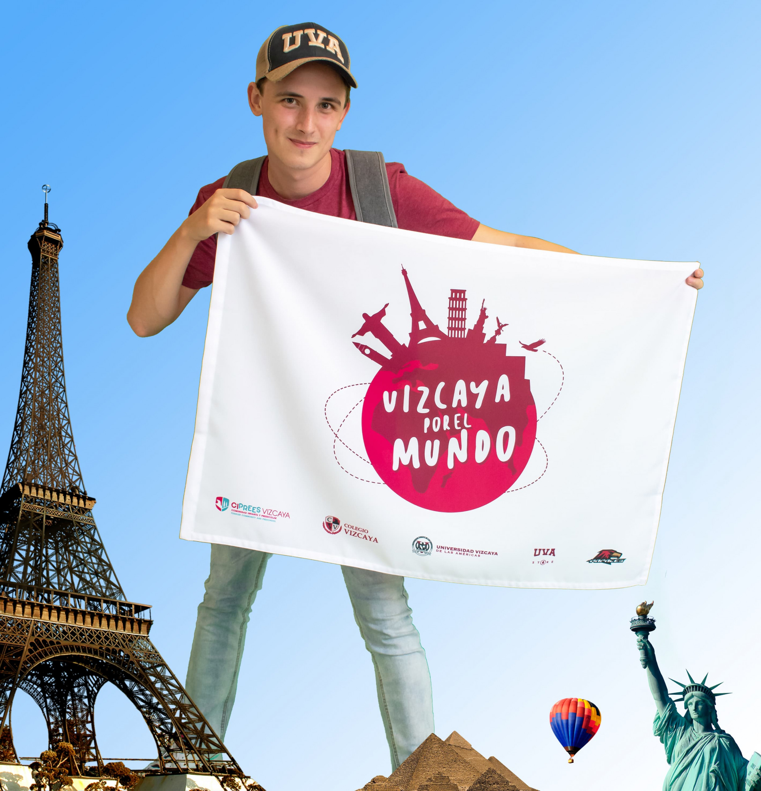 ¡Muestra tu orgullo Vizcaya en tus viajes! Bandera Vizcaya por el mundo. 60X90 cm
