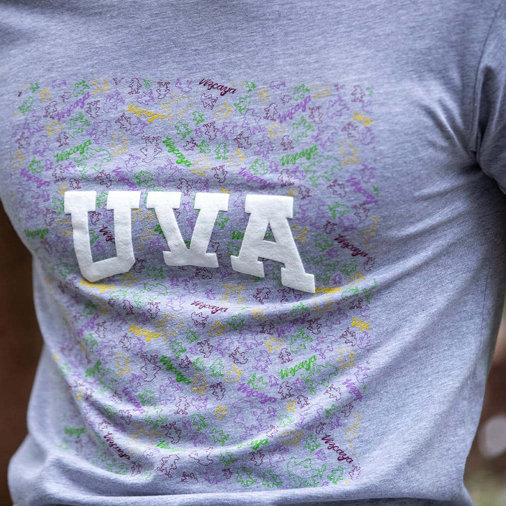 Playera Cuello Redondo UVA Rapaces Gris. 100% Algodón Impresion 3D serigrafia Color de Letras UVA tinto/Blanca