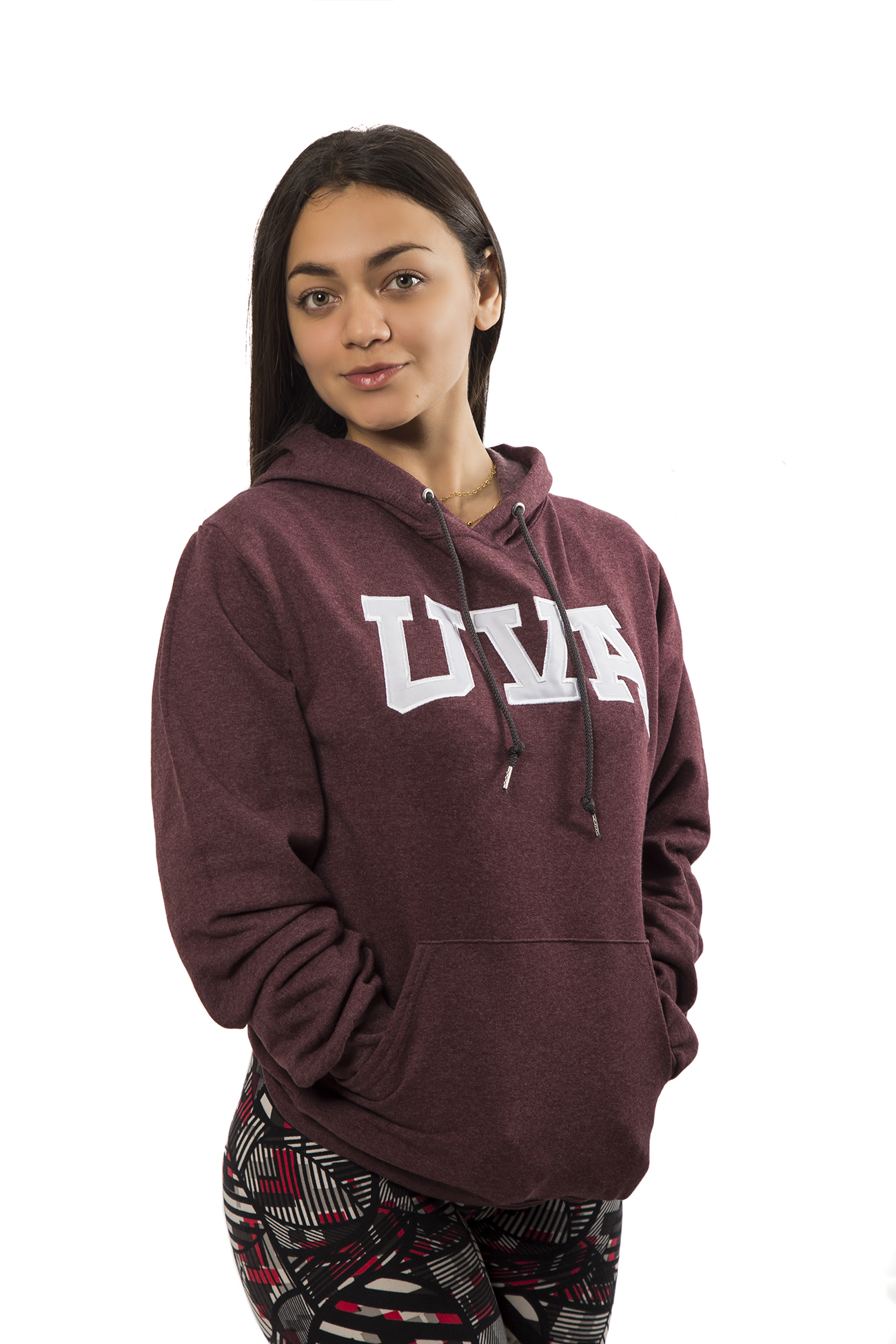 SUDADERA UVA OFICIAL TINTO JASPEADO UNISEX. * 40% Poliester 60% Algodón * Manga Larga * Unisex * Logo UVA OFICIAL * Canguro * Capucha