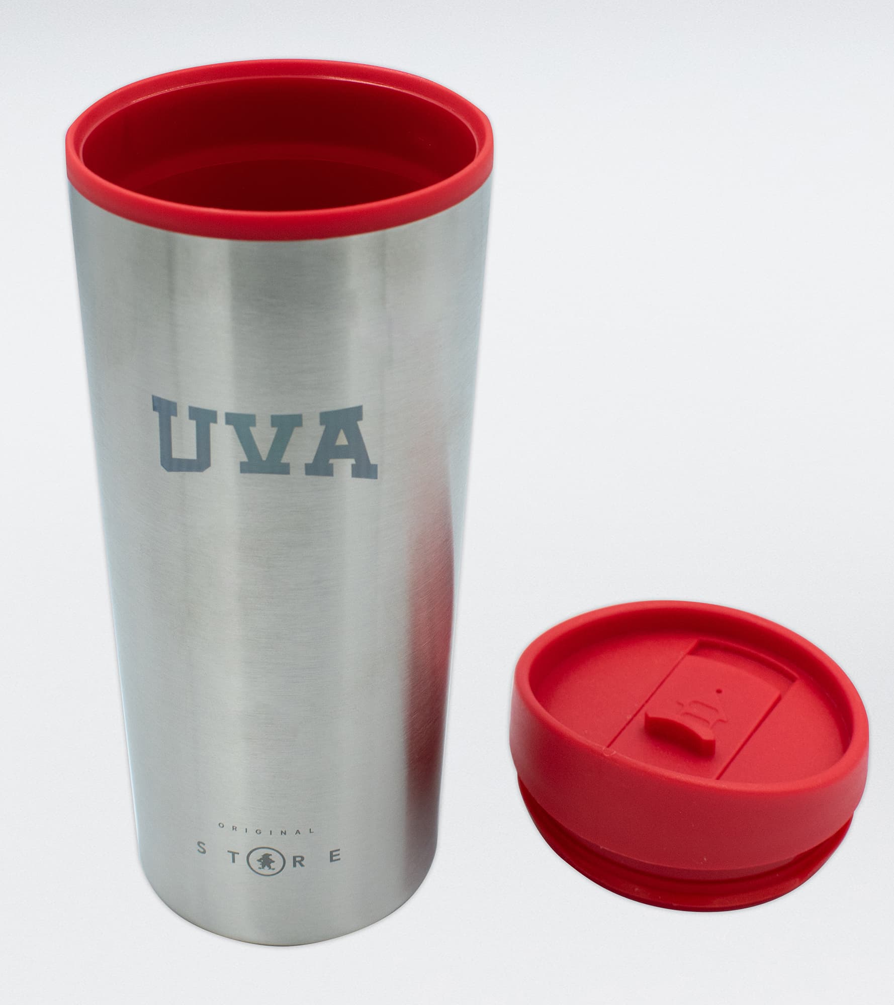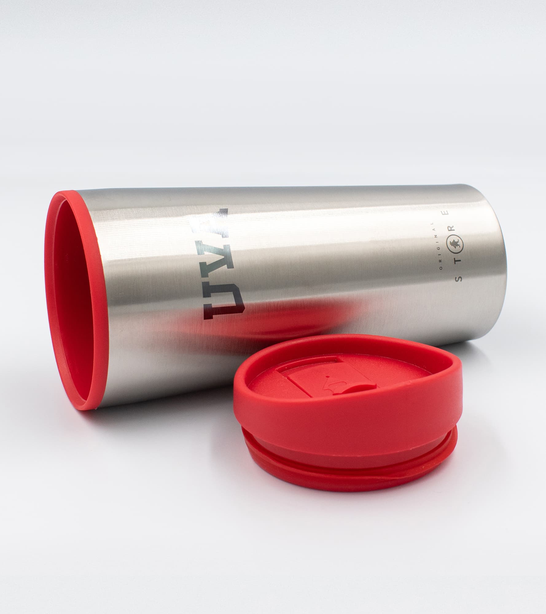 Termo UVA Plata con tapa roja es la opción que necesitas para llevar tu bebida favorita a cualquier parte. Termo UVA Plata Acero Inoxidable Capacidad 500 ml. Interior Plástico. Grabado Laser UVA